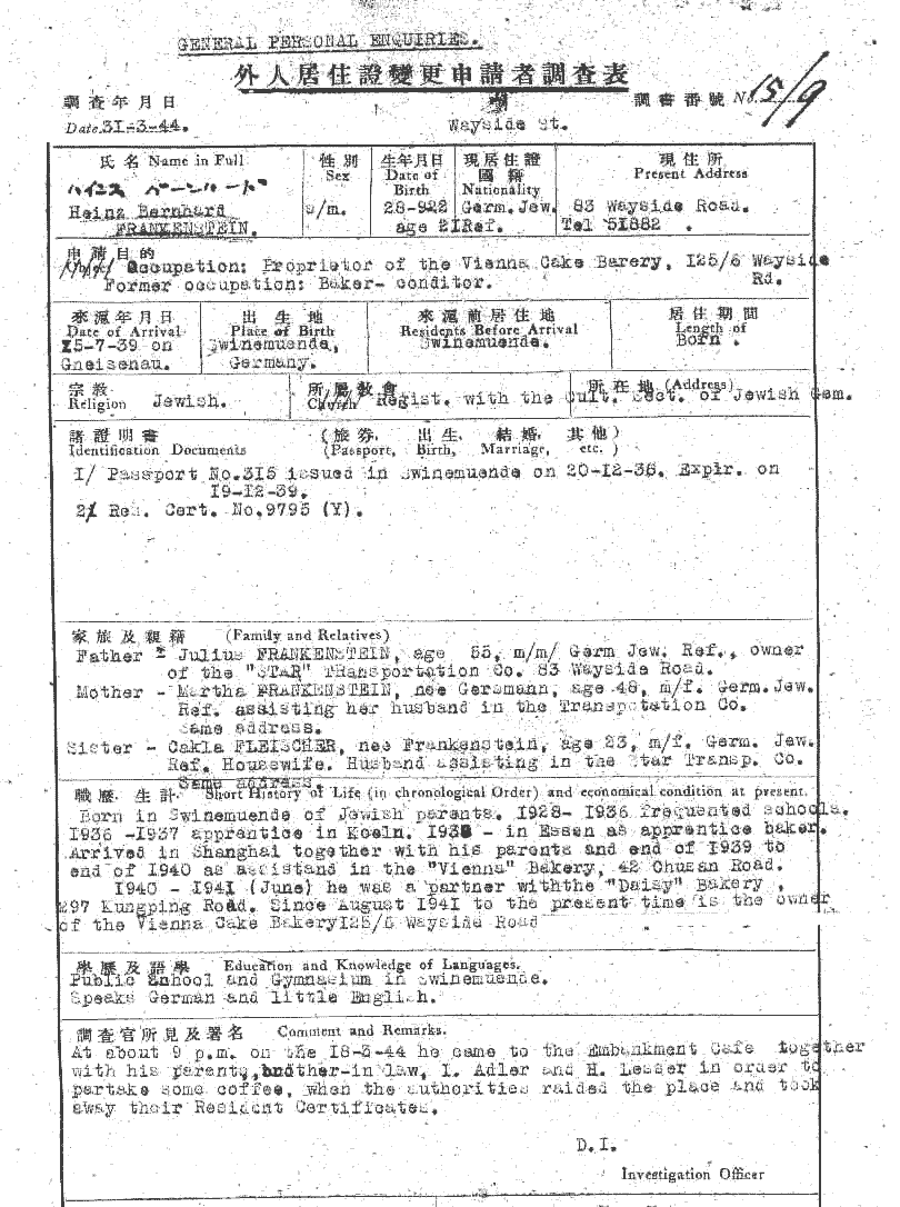 and when arrived in Shanghai, ID's held, life history (in short) educational
