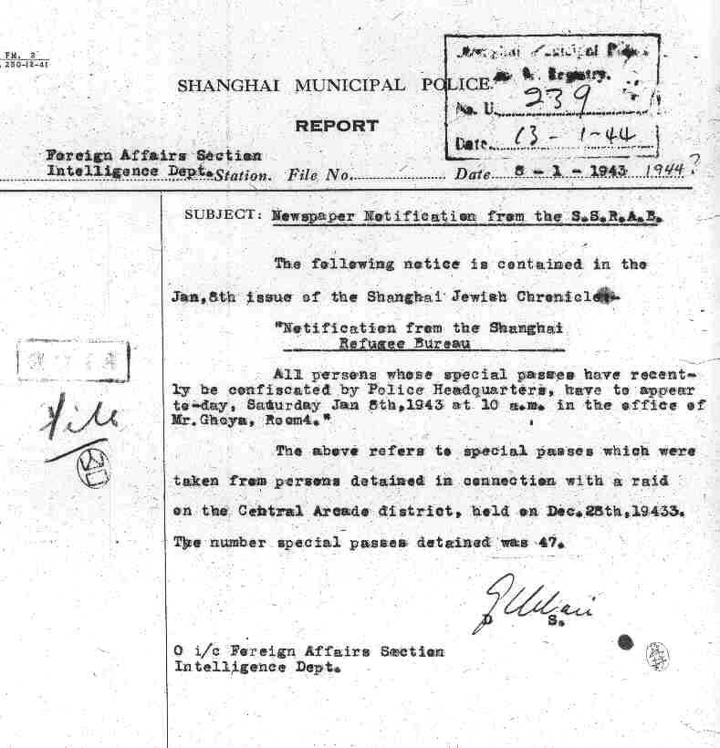 Chronicle of Jan 9th, 1944, the Shanghai Stateless Refugee Affairs Bureau